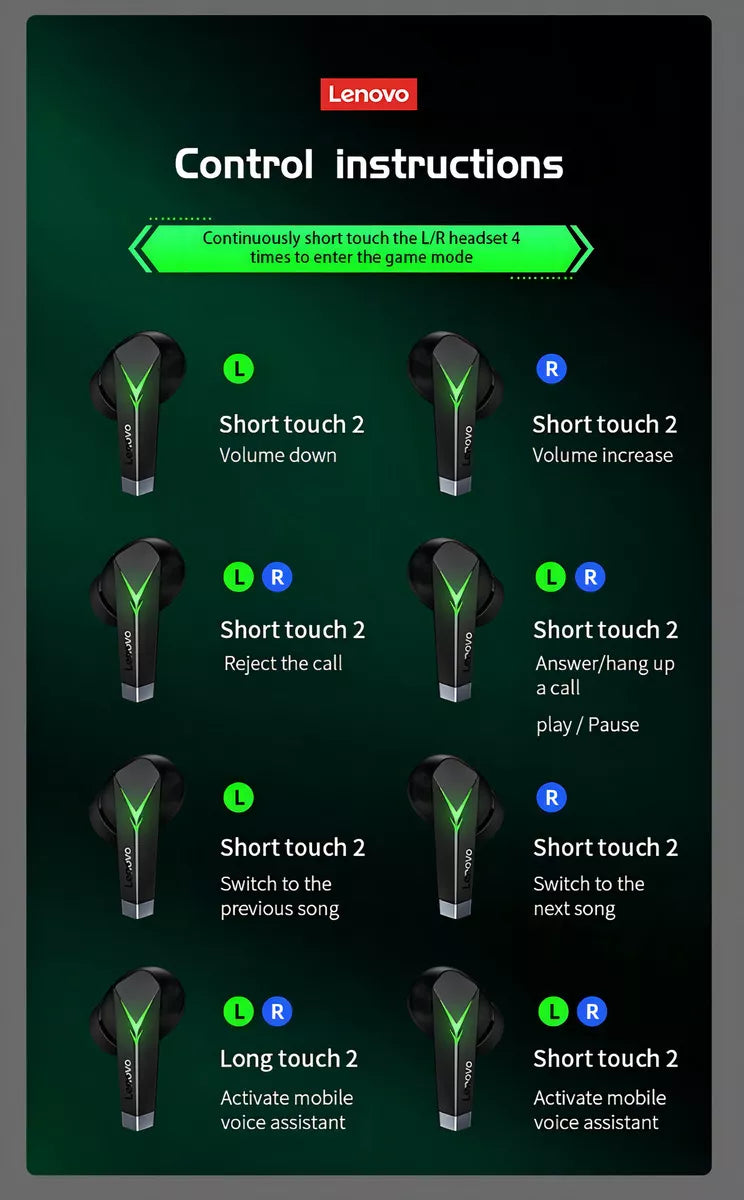 Un par de auriculares Lenovo LP6 (izquierdo y derecho)