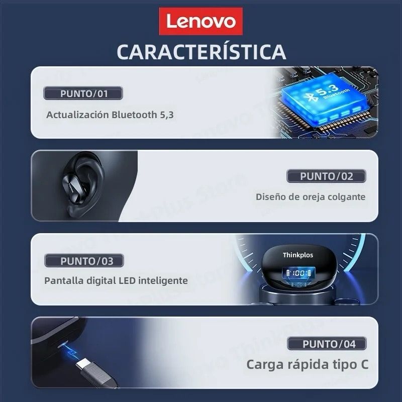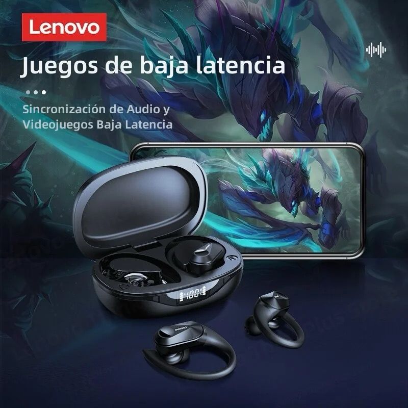 Auriculares Deportivos Lenovo LP75 con Cancelación Activa de Ruido, 48H de Batería y Diseño Resistente al Agua.